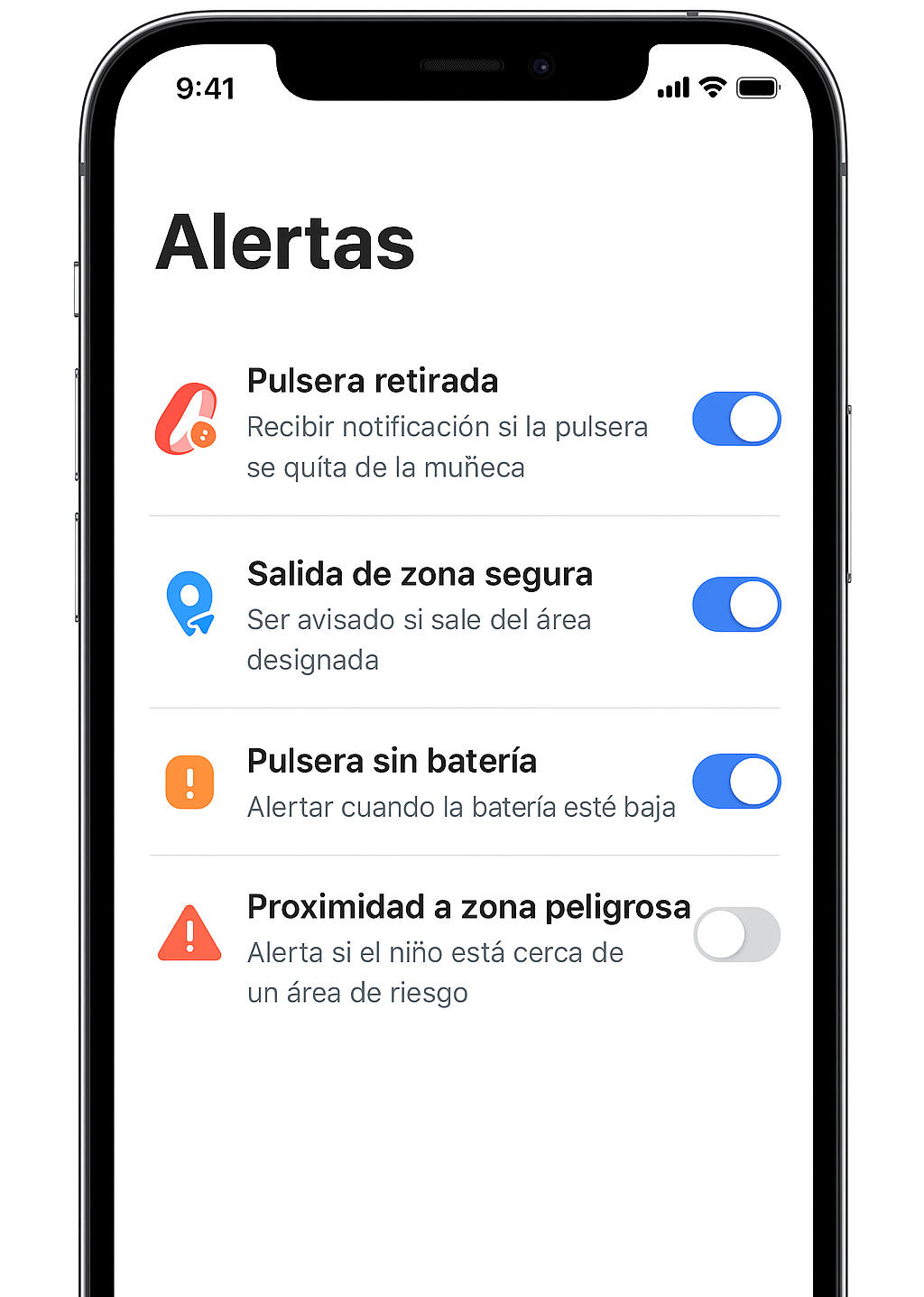 BeA te avisa al instante si tu hijo se aleja de una zona segura, si intenta quitarse la pulsera o si la batería está baja. Lo importante, cuando lo necesitas